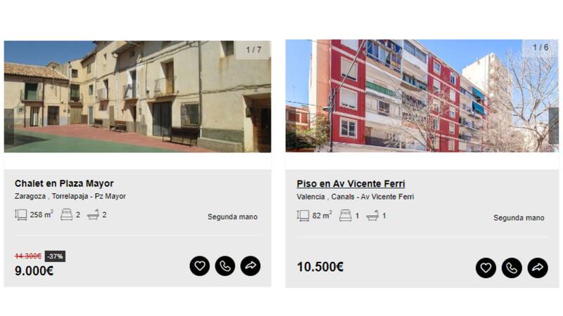 La primera de las promociones disponibles es un chalet en Torrelapaja, Zaragoza, de 258 metros cuadrados, con dos plantas, dos dormitorios, cocina, dos baños y sala de estar.