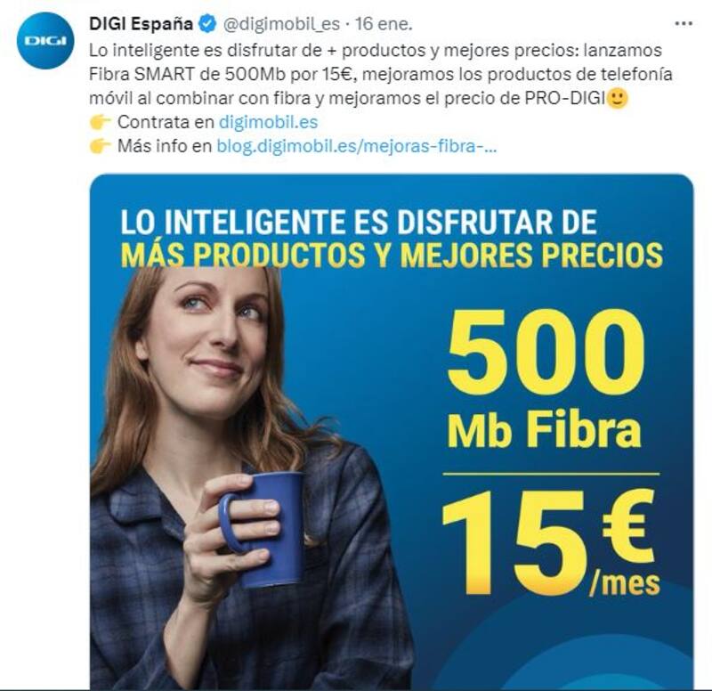 Digi se hace hueco en el mercado de telecomunicaciones en España y ha lanzado una oferta para llevar internet por fibra de 500 mb por tan solo 15 euros. Todo lo contrario que las compañías tradicionales como Movistar, Vodafone y Orange, que incluso han elevado sus tarifas a comienzos de este 2023.