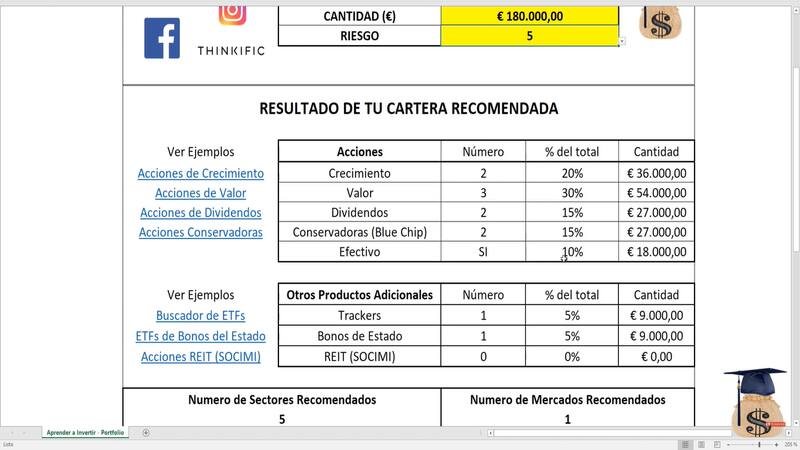 Luego, planteó posibles escenarios de lo que se podría hacer con el capital en mano. Para ello, utilizó una herramienta que él mismo diseñó y que sirve para crear una cartera de inversión personalizada y a cada medida.