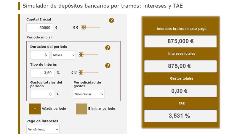 El gráfico de arriba fue tomado del simulador de depósitos del Banco de España y muestra cuánto se podría ganar a elegir esta propuesta: con una inversión de 75.000 euros, el máximo permitido por la institución, la ganancia total sería de 1537,50 euros.