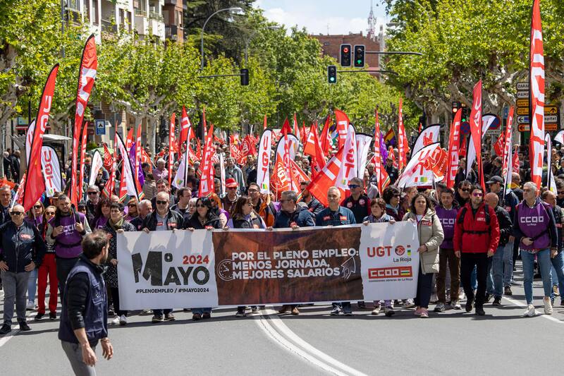 En esta jornada, CCOO y UGT han instado al Gobierno a "lograr el pleno empleo" y a "reducir la jornada, trabajar menos subiendo salarios y viviendo mejor, creciendo el empleo y la productividad de las empresas".