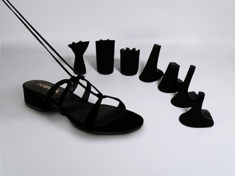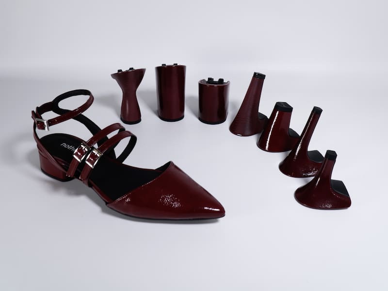 Nothink toma este concepto tan simple como radical y lo resuelve: un zapato de mujer con tacón intercambiable, no mediante una lengüeta externa o una suela de silicona, sino a través de un mecanismo interno de ingeniería alemana con más de 10 años de desarrollo y dos patentes separadas.