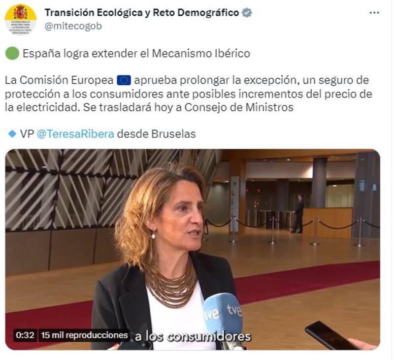En este contexto, hay una buena noticia para los consumidores: el Gobierno de España extenderá la excepción ibérica. Loha confirmado este martes la vicepresidenta tercera del Gobierno y ministra para la Transición Ecológica y el Reto Demográfico, Teresa Ribera.