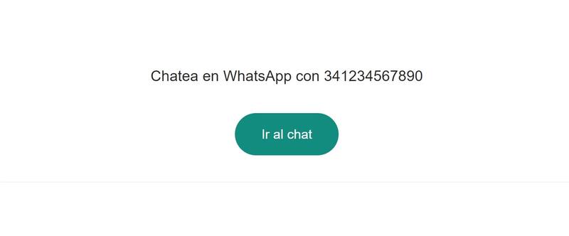 Luego de presionar enter, el navegador te llevará hasta una página donde te dará la posibilidad de ingresar a la ventana de chat de este número presionando donde dice "Ir al chat" y, finalmente, comunicarte con esa persona sin guardar el contacto.
