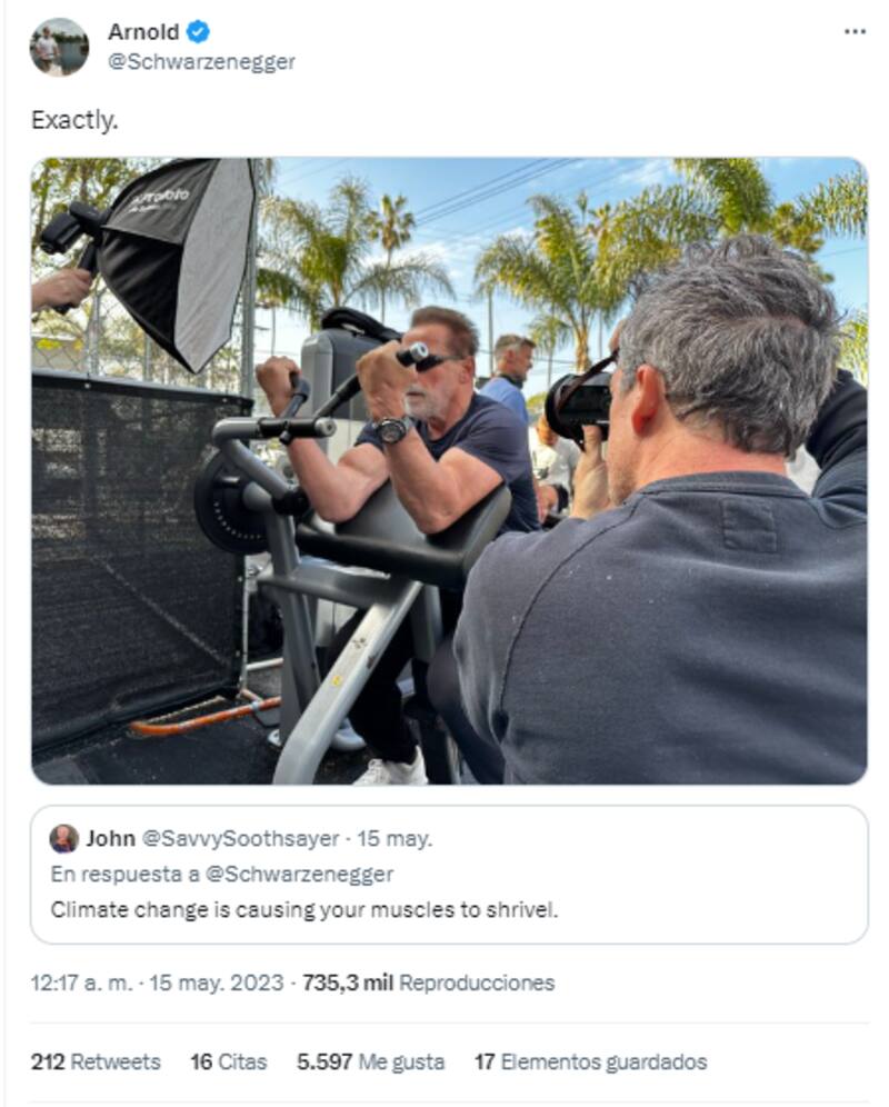 "Durante los últimos 5 años, basó el 80% de mi alimentación en productos vegetales . A veces sigo comiendo carne, porque no puedo resistirme a un jugoso filete cuando tengo amigos en casa, o un crujiente escalope vienés cuando estoy en Austria", aseguró Schwarzenegger.
