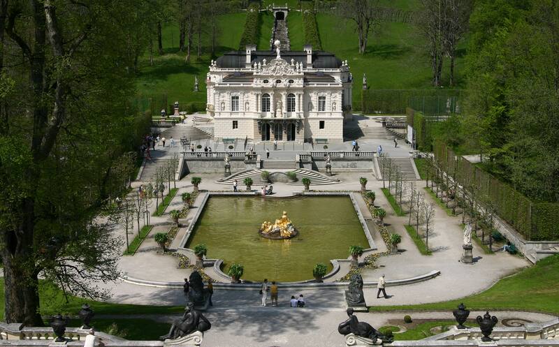Presentación en el aeropuerto de Bilbao antes de la salida del vuelo con destino Múnich. Llegada, encuentro con el autocar y el guía y salida hacia el Palacio de Linderhof, el más pequeño de los palacios de Luis II de Baviera, construido entre 1874 y 1878 en estilo rococó, en honor al absolutista Luis XIV, el Rey Sol, a quien idolatraba