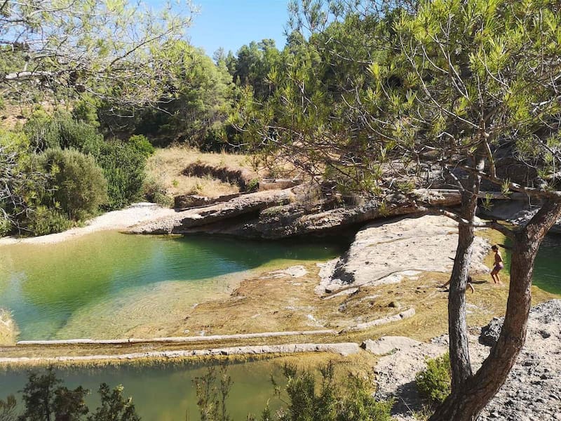 O también, otro lugar que invita a los habitantes y turistas a nadar es L'Assut de Lledó, donde el río Algars pasa debajo de un puente creando unas increíbles piscinas naturales de aguas transparentes.