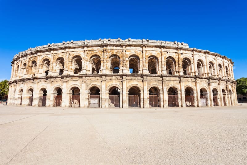El anfiteatro romano de Nimes, construido en el siglo II d.C., destaca como una de las edificaciones de su tipo más notables de Europa. Inspirado en el famoso Coliseo de Roma, su "hermano" italiano, este recinto, aunque más modesto, es un testimonio brillante de la arquitectura romana en Francia. En su máximo esplendor, podía albergar a 24.000 espectadores.