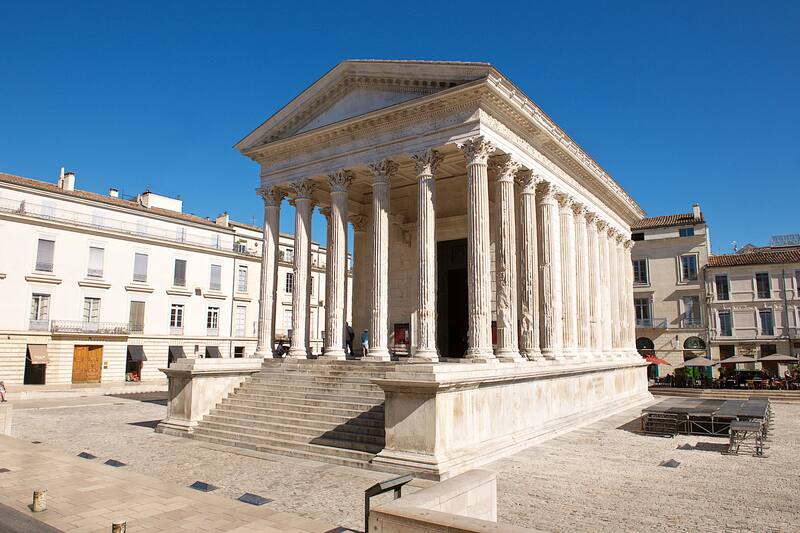 Construido cerca del año 16 a.C., el templo de la Maison Carrée se mantiene como uno de los ejemplos de arquitectura romana mejor preservados a nivel global. Originalmente, se dedicó a Cayo y Lucio César, nietos de Augusto.