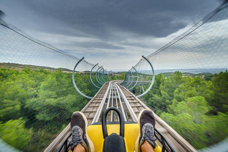 Una de las atracciones más populares del parque son las montañas rusas, que ofrecen una emocionante experiencia para los amantes de la adrenalina. Además, el parque cuenta con diferentes atracciones para toda la familia, como el tiro con arco, el toro mecánico, la zona de escalada y la pista de karts.