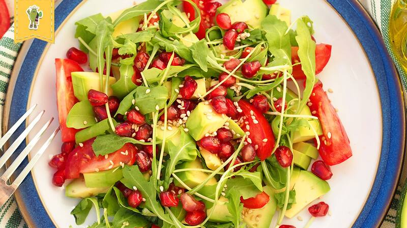 Esta ensalada es una excelente opción para aprovechar todos los beneficios de la granada, combinando su frescura y propiedades antioxidantes con la cremosidad del aguacate y el toque refrescante de la menta.