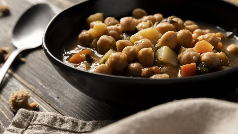 Para preparar el delicioso plato de garbanzos, setas y espinacas con yema curada, comenzamos por remojar los garbanzos en agua fría durante la noche. Al día siguiente, los cocemos en una olla con agua hirviendo durante sesenta a noventa minutos, hasta que estén tiernos. Una vez cocidos, los escurrimos, listos para el guiso.