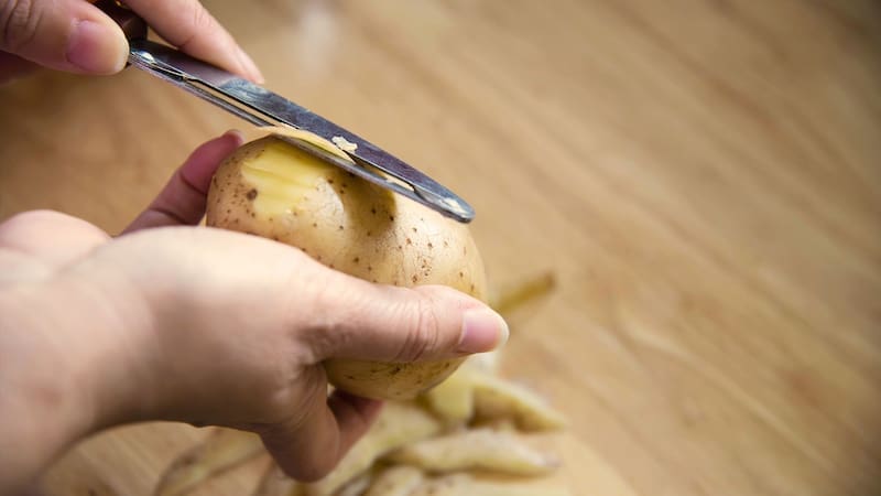 - Lavar bien las cáscaras de papa y cortarlas en trozos pequeños