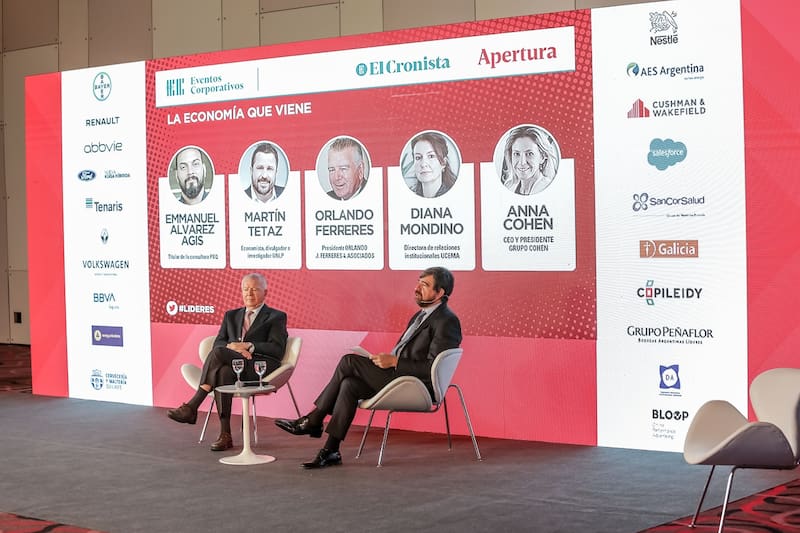 El panel La economía que viene contó con la presencia de Emmanuel Alvarez Agis, titular de la consultora PxQ; Martín Tetaz, economista, divulgador e investigador de la UNLP; Orlando Ferreres, presidente de Orlando J. Ferreres & Asociados; Diana Mondino, directora de Relaciones Institucionales de la UCEMA; y Anna Cohen, CEO y Presidente de Grupo Cohen.