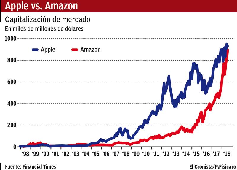 Durante los picos máximos de la jornada de ayer, Amazon llegó a tener un valor de mercado de u$s 902.000 millones mientras que Apple se mantuvo por debajo de u$s 943.000 millones. Las tecnológicas que siguen implacables detrás del dúo son Alphabet en u$s 826.000 millones, Microsoft en u$s 806.000 millones y Facebook en u$s 600.000 millones.