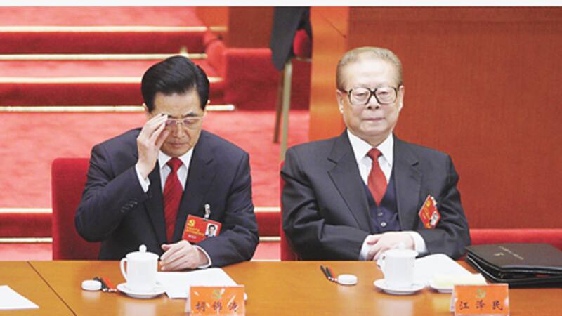 Las referencias no sorprendieron teniendo en cuenta que Hu tenía a su predecesor mirándolo sobre su hombro. Jiang Zemin, el ex presidente de 86 años que entregó el poder hace diez años, entró a la sala con Hu y se sentó a su izquierda.