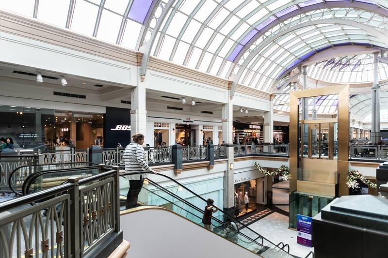 A primera hora de la tarde, el shopping empieza a llenarse, no del todo, pero sí hay actividad. Sin embargo, si nos fijamos de nuevo, podemos ver un poco de tensión en el modelo de negocio del King. La mayoría de los centros comerciales tienen grandes tiendas ancla de varios pisos. Un shopping de tamaño normal podría tener una en cada extremo. El poderoso barco que es el King está sujeto por seis anclas: Neiman Marcus, Nordstrom, Macy's, Primark, Bloomingdale's y Dick's Sporting Goods. Si se recorre el perímetro del King con ojo crítico, se observan otras dos posiciones de anclaje que están vacías. También estaban ocupadas por grandes locales. Lord & Taylor cerró en 2020, cuando su empresa matriz quebró. El JC Penney del King cerró en 2017. (Su matriz también quebró en 2020).