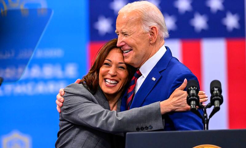 Las declaraciones de Harris estuvieron precedidas por una llamada telefónica de Biden, que se encuentra aislado con Covid-19 en su casa de vacaciones de Delaware. "El nombre en la boleta ha cambiado, pero no la misión", dijo el presidente. "Te estoy viendo [Kamala]. Te quiero".
