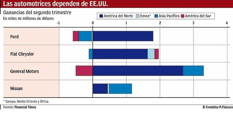 General Motors, Ford, Nissan y Renault advirtieron sobre los costos de las materias primas, Fiat Chrysler dijo que los aranceles en China debilitaron la demanda, mientras que Daimer dijo que su poder de fijar precios a los autos Mercedez-Benz se ve limitado.