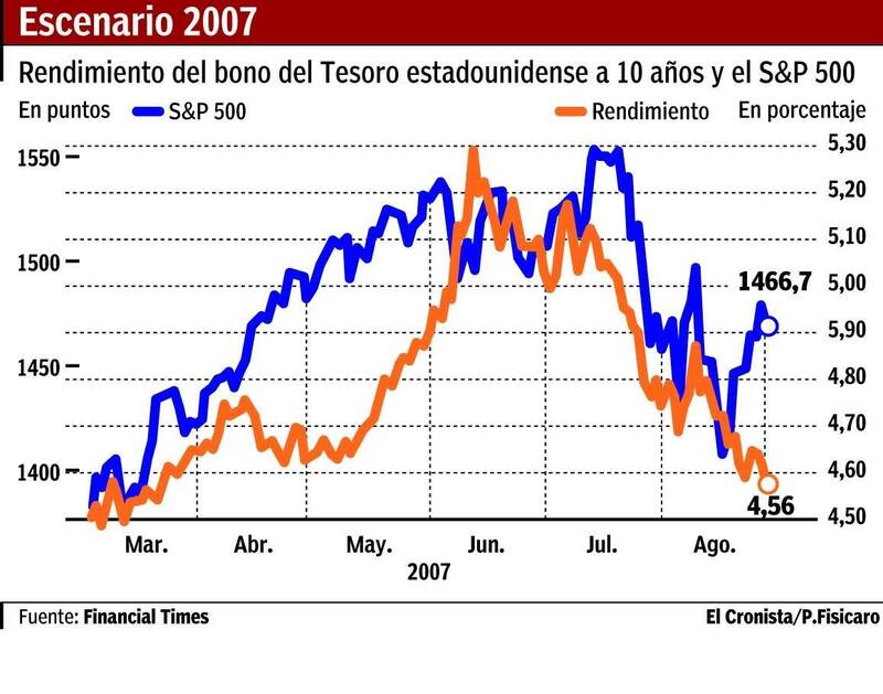 Las operaciones bursátiles de la semana pasada, y de la primavera boreal de 2007, fueron reflation-on, la creencia de que el crecimiento iba a desencadenar inflación. Pero luego el lunes, y durante gran parte del verano boreal de 2007, nos pasamos al modo risk-off, cuando los inversores vendieron todo lo que conllevaba relativo riesgo y huyeron hacia cualquier cosa relativamente segura (es decir, bonos). Ese período de 2007 incluyó el abrupto derrumbe de muchos índices de crédito, el cierre de dos hedge funds de crédito de Bear Stearns, el "día que el mundo cambió" en la eurozona cuando el Banco Central Europeo respondió al congelamiento de los fondos de money market dictado por BNP Paribas, y la primera retracción del crédito en EE.UU.. El analista financiero Jim Cramer dijo "tenemos un Armagedón" en los mercados de renta fija durante una entrevista en CNBC, y la Reserva Federal abrió la ventaja de descuento para aliviar la presión sobre el crédito.