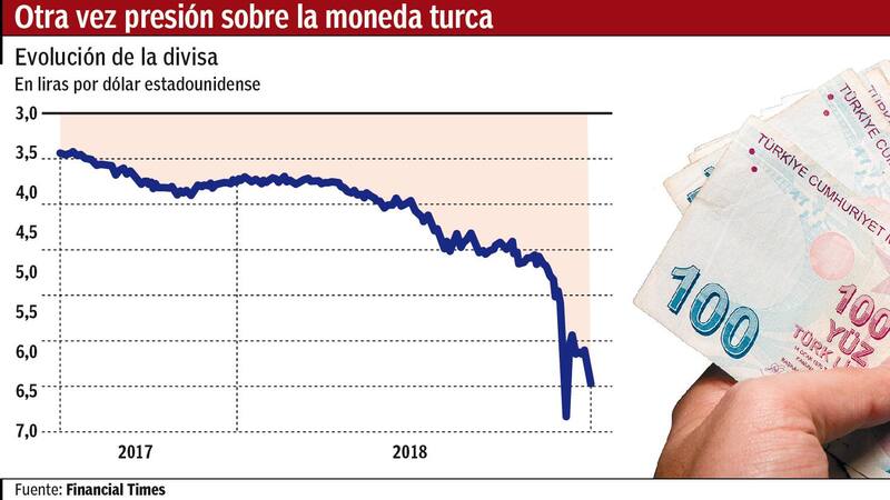 La lira cotizaba cerca de su piso cuando abrió Wall Street y cerró con una baja de 2,4% contra el dólar. En lo que va de 2018, retrocedió 41%. A una cotización de 6,4 liras por dólar está volviendo a su piso histórico de 7,21 liras por dólar registrado este mes.