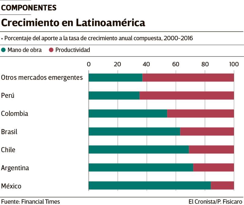 El crecimiento en toda la región promedió 2,8% anual entre 2000 y 2016, en comparación con la media de 4,8% en otras 56 economías emergentes, excluyendo China.