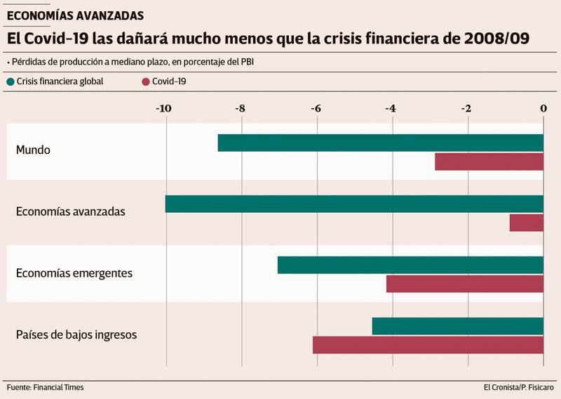 En 2024 las economías avanzadas producirán cerca de un 1% menos que lo que marcaba la trayectoria de crecimiento anterior a la pandemia, según las proyecciones del FMI. En cambio, después de la recesión de 2008-09 sufrieron un retroceso mayor al 10%.