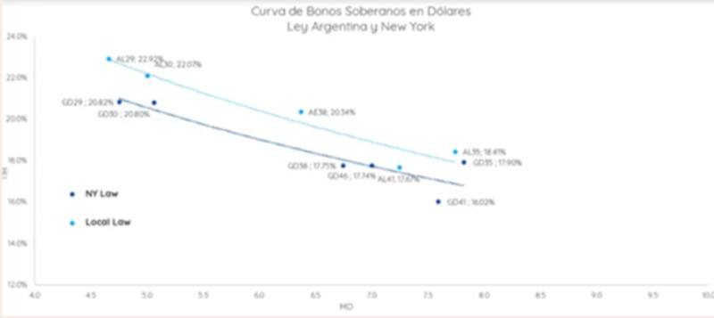 Las paridades de los bonos supieron quebrar la barrera del 30%, aunque se estabilizaron en niveles de 35% en promedio. Los bonos operan con tasas por encima del 22% en el tramo corto de ley local y por encima del 18% en el tramo largo. La deuda de ley Nueva York, en tanto, opera con tasas del 21% en la parte corta y del 16% en la parte larga.