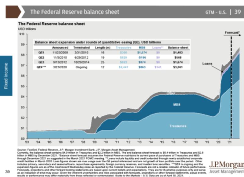 La Fed lleva un ritmo de compras de u$s 120.000 millones mensuales de compras de bono del tesoro americano y de activos respaldados por hipotecas, haciendo que su hoja de balance pase de u$s 3,9 trillones antes del inicio de la crisis a los u$s 7,9 trillones actualmente.