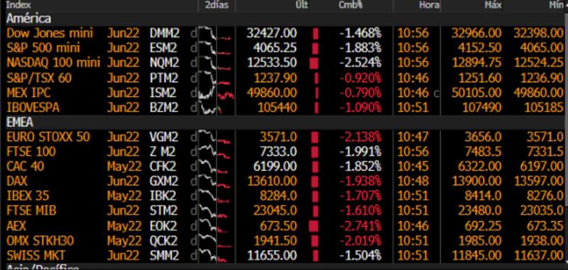 En lo que va del año el Nasdaq cae 23%, le sigue el S&P500 con una baja del 14,2% y luego el Dow Jones con una pérdida de 10%.