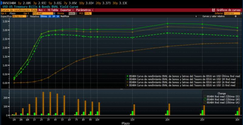 En donde más se observan los desplazamientos es en el tramo más corto, el más sensible a la suba de tasas de la Reserva Federal (Fed).