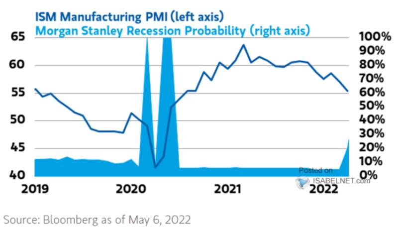 Concretamente, el indicador de recesión de Morgan Stanley señala un 27% de probabilidad de una recesión en los próximos 12 meses, la más alta desde la pandemia.