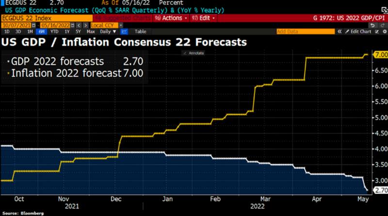 "El presidente de la Fed, Jerome Powell, descartó un movimiento de 75 puntos básicos para la próxima reunión, lo que trajo algún alivio en la rueda del 4 de mayo, pero luego el mercado entendió que no cambiaba la postura de fondo respecto al cronograma de subas", afirmó.