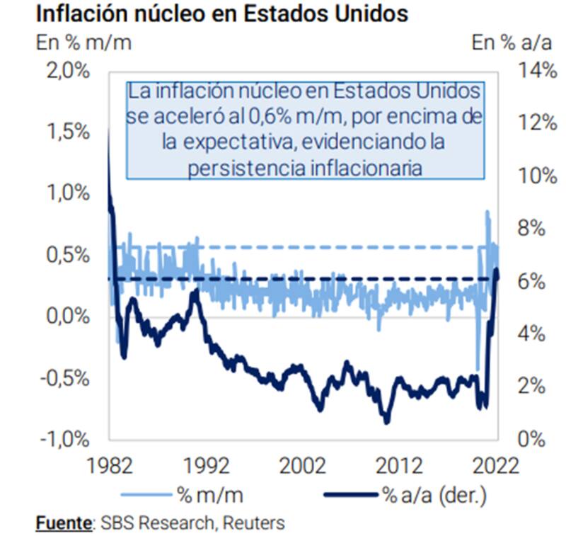 Con una visión similar, Juan Manuel Franco, economista jefe de Grupo SBS, cree que la dinámica inflacionaria llevará a la Fed a disponer de dos subas (hikes) consecutivas de al menos 50 puntos básicos cada una en sus próximas dos reuniones.
