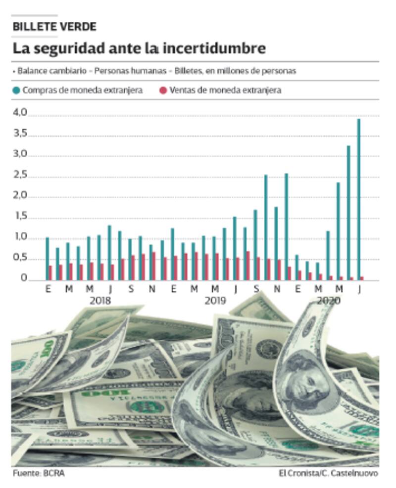 A través del Informe de la Evolución del Mercado de Cambios y Balance Cambiario, la autoridad monetaria reveló, además, que las compras brutas de billetes de las “Personas humanas totalizaron u$s 753 millones en julio, superando los u$s 629 millones que dicho segmento había adquirido el mes anterior.