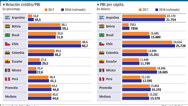 Según el informe "Latin America and Emerging Markets Update", publicado este mes por Bank of America Merril Lynch, hay dos indicadores que favorecen esta visión. Por un lado, los préstamos al sector privado en relación al PBI son de sólo el 18% en Argentina, mientras que el promedio de la región es de 45% (y entre los mercados emergentes llega a 90%).