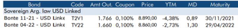 Finalmente, desde Econviews agregaron que "el mercado viene reduciendo la esperanza de devaluación medida como la diferencia entre las tasas que paga el TO21 y el T2V1 y ya está abajo del 60% anualizado. La lógica es que en año de elecciones el Gobierno va a ser renuente a devaluar y la soja por encima de los u$s 500 la tonelada ayuda. Pero hay que ver si le alcanza para pilotear la situación con inflación creciente y una necesidad mayor de importaciones dada la reactivación esperada. A nuestro criterio vale la pena tener posición en los bonos dólar linked , dijeron desde la consultora que dirige Miguel Kiguel.