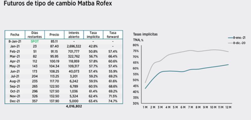 Sin embargo, ese no es el escenario para Argentina. Sobre este punto, Maximiliano Bagilet, Asesor Financiero y Julio Calcagnino, analista de mercados, ambos de TSA Bursátil de Grupo Transatlántica afirmaron: "No estamos en un contexto de normalidad cambiaria y en el actual contexto las tasas implícitas reflejan más expectativas de depreciación que de tasa de interés".