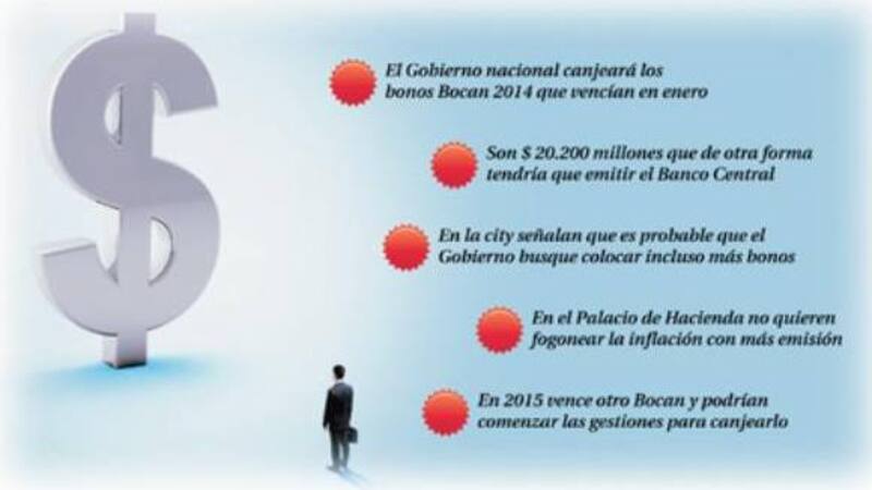 Inmerso en un escenario que destila cada vez mayor complejidad financiera, el Gobierno ultima los detalles por estas horas para realizar un canje ambicioso. El 30 de enero de 2014 vence el bono en pesos Bocan 2014 (también llamado Bonar 2014) que había sido emitido como parte de un canje voluntario de los bonos Pre9 y Pr12, que vencían en 2009 y 2012.
