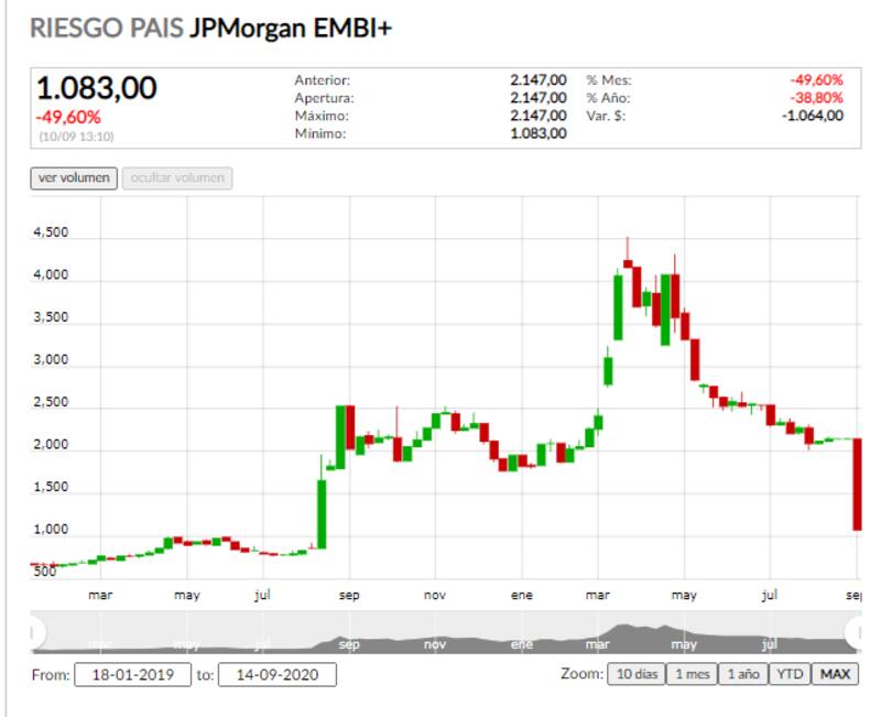 “Los bonos rinden 11,5% lo cual refleja niveles realmente elevados para el mundo que estamos viendo. Compañías quebradas rinden 6% a 8% en este mundo, lo cual refleja que hasta el peor crédito no rinde más de 8% y Argentina rinde 11,5%. No tiene sentido. Si los bonos apuntan a tasas del 10%, esto podría llevarnos a un riesgo país de entre 700 a 900 puntos, descendiendo de como evolucionen los bonos dentro del índice , afirmó.