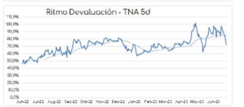 Desde Ecolatina explicaron que dicho movimiento podría interpretarse como un cambio de estrategia ante la desaceleración inflacionaria evidenciada en mayo y lo que va de junio, llevando nuevamente el crawling peg por debajo del 7% mensual para contribuir a reducir las presiones inflacionarias.