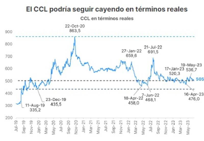 Por otro lado, agregaron que al analizar el valor del CCL en términos reales, el mismo se ubica en mínimos de la administración de Alberto Fernández.
