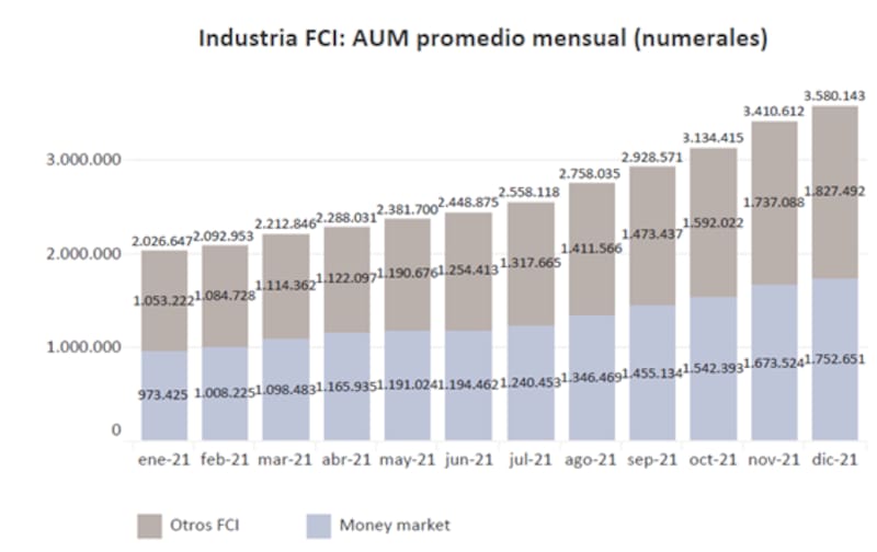 Según datos provistos por los analistas de Criteria, a comienzos de 2021 los fondos administraban $ 2,04 billones, lo cual implica que, en los últimos 12 meses, la industria sumó $1,56 billones en activos bajo administración. Es decir, un incremento de 76%.