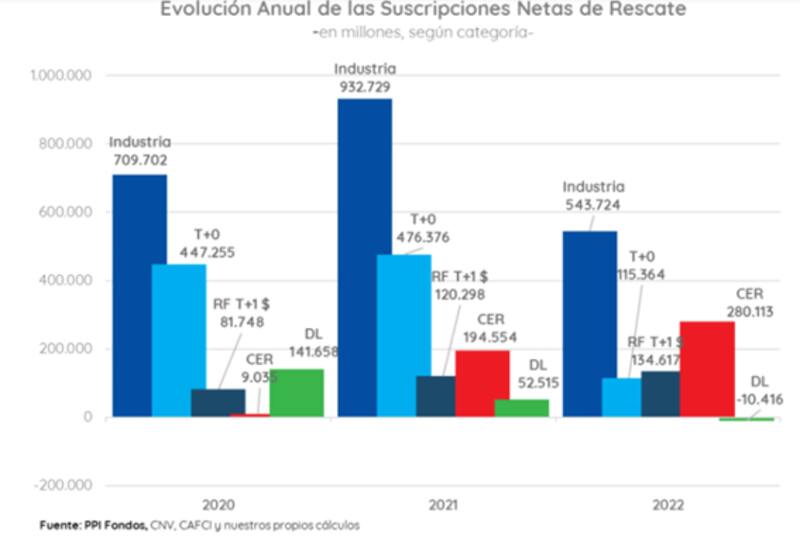 Según datos de PPI, si lo miramos desde una perspectiva más amplia, en lo que va del año, las suscripciones netas de rescates suman unos $280.000 millones, representando el 52% del total recibido por la industria.