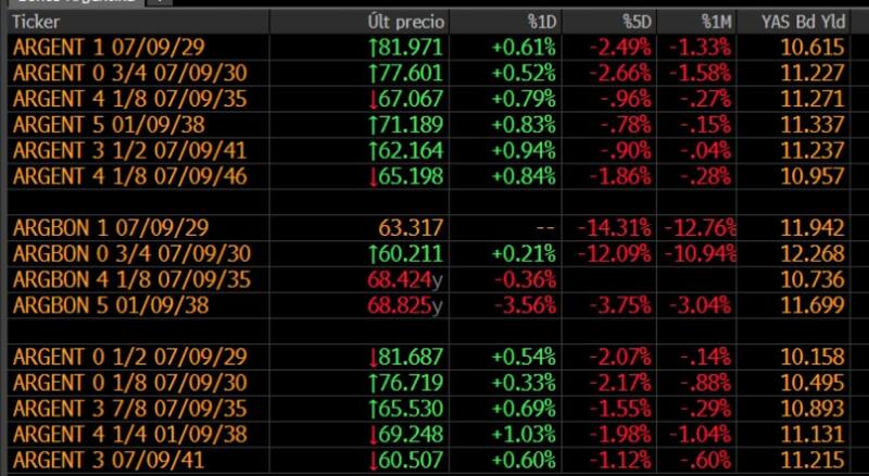 Los precios de los bonos siguen lejos de sus valores par, aunque en las últimas semanas se consolidó cierta compresión de spreads, especialmente si el mercado descuenta una continuidad del ajuste fiscal y del anclaje monetario.