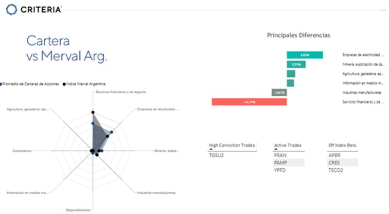 En lo que respecta a los fondos que siguen al índice Merval Argentina, se puede ver que dichos fondos son los que toman mayores distancias con respecto a su benchmark. “Puntualmente, eligen el sector energético, destacándose en dicho segmento a las acciones de TGSU2 entre las apuestas con mayor convicción. Además, otros papeles elegidos por los gestores de este sub-segmento son YPFD, PAMP, FRAN , remarcó González.