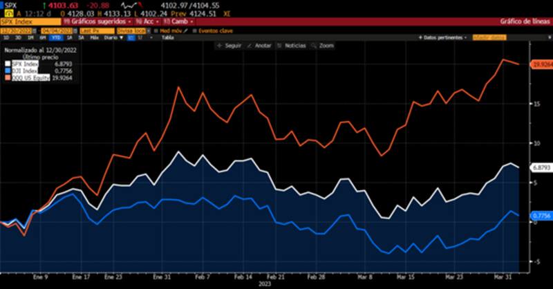 A su vez, las bolsas en EE.UU. intentan recuperar parcialmente lo que perdieron en 2022, el cual dejó una caída de más de 30% en el Nasdaq y casi 20% de caída en el S&P500.