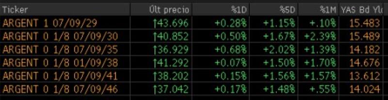 “Creemos que aún con estos precios el AE38 es el que cuenta con un mayor potencial upside ya que paga mayor cupón que el resto. Por otro lado, para aquellos que deseen permanecer en la parte corta de la curva, los ratios favorecen a bonos como AL29 o GD29 vs. el AL30 que se encuentra rindiendo la misma tasa que sus comparables ley NY , comentaron.