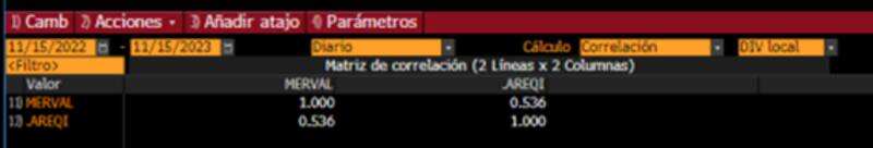 Esto implica que la relación entre ambos es fuerte y que las acciones en pesos sirven como cobertura ante un rally en el dólar.