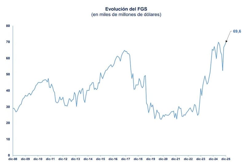 “El valor de mercado de la cartera del FGS del ANSES alcanzó un nuevo récord a fin del 2025, superando el último máximo de u$s 65.000 millones de 2017”, consignó el economista en un reciente informe.